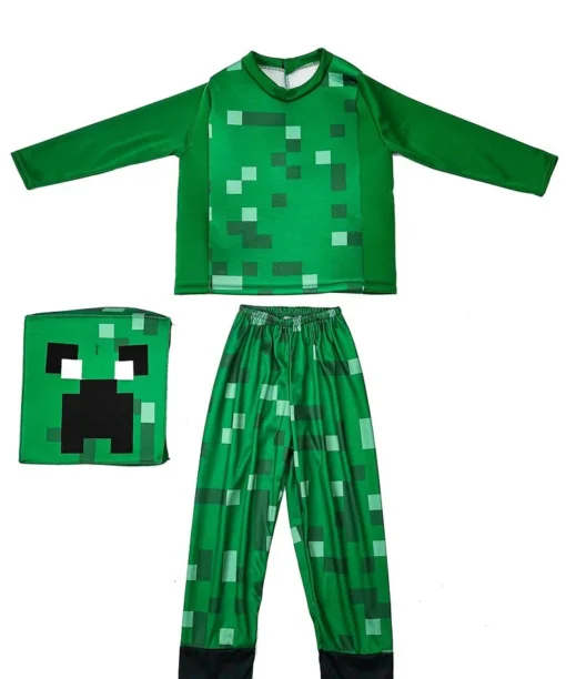 Komplektacijoje: 1 Creeper stiliaus 3D žalios spalvos palaidinė, 1 Creeper stiliaus žalių kelnių ir 1 Creeper kaukė.