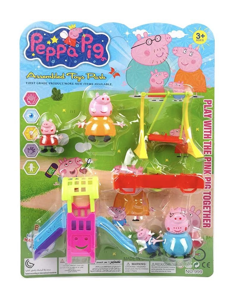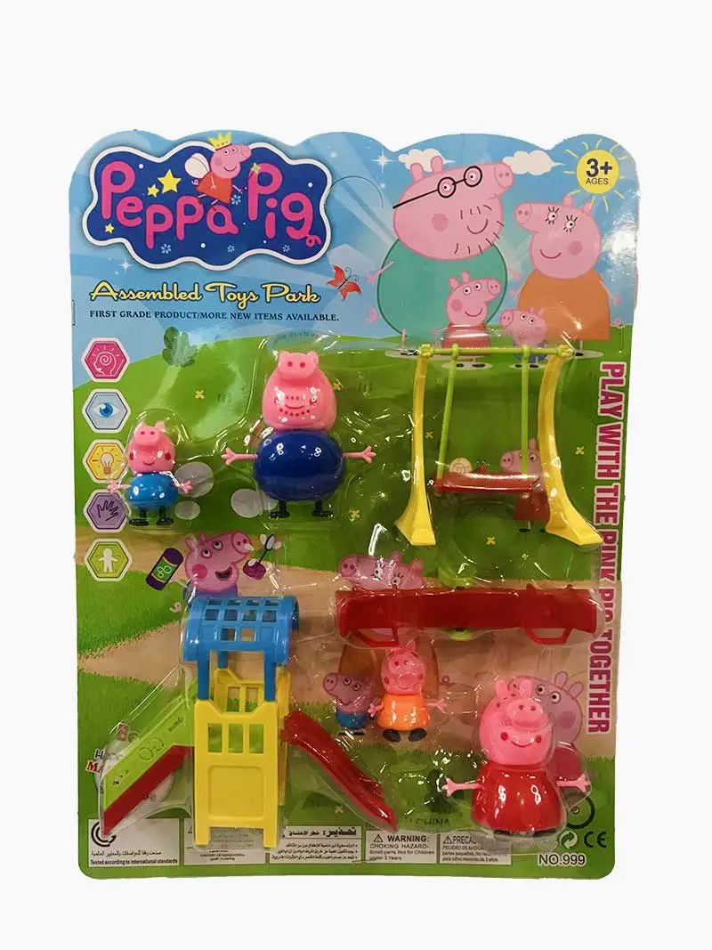 Tai yra Peppa pig žaidimo aikštelės rinkinys. Rinkinį sudaro- 2 skirtingus supynės, čiuožykla ir 4 kiaulytės- Peppa pig, brolis Džiordžas, Peppa pig mama ir Peppa pig tėtis.