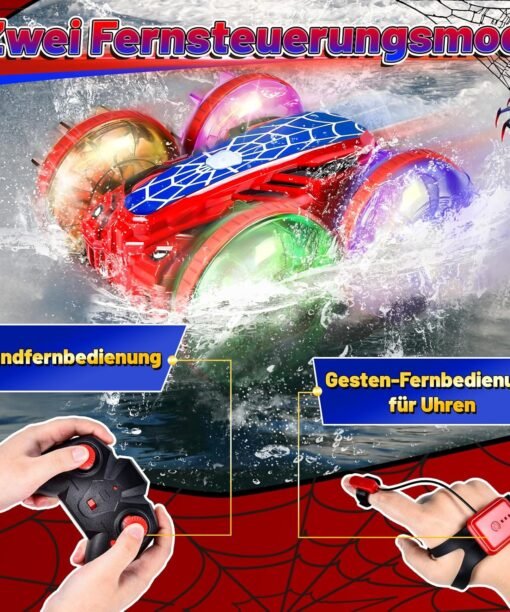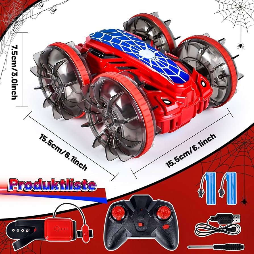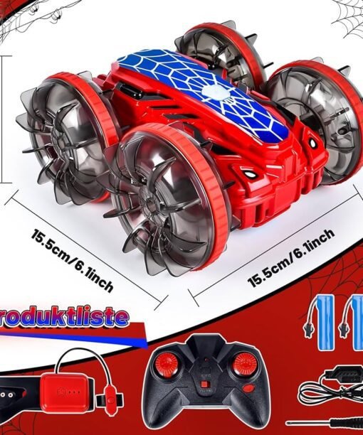 Mašina valdoma valdymo pultu. Sukiojasi 360°. Važiuojant laipioja per kliūtis. Atspari vandeniui.