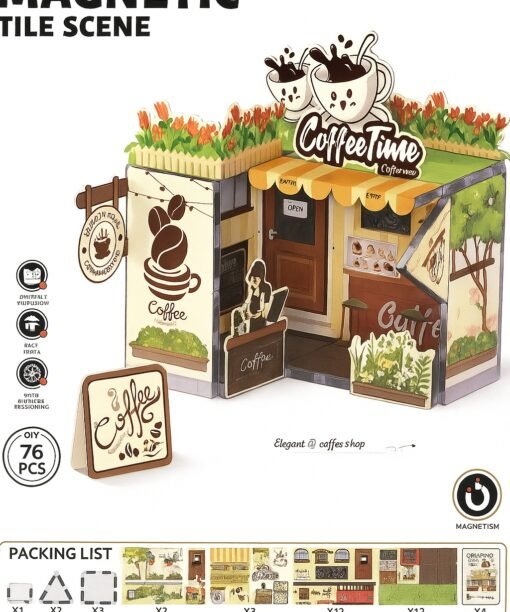 Šis 76 dalių magnetinis konstruktorius leis vaikams nuo 3 metų tapti mažaisiais architektais ir sukurti žavingą kavinės sceną. Lengvai sujungiamos magnetinės plytelės ir įvairūs priedai skatins kūrybiškumą, vaizduotę bei smulkiąją motoriką. Sukonstruokite jaukią kavinę, dekoruokite ją ir kvieskite žaisti savo lėlytes ar figūrėles!