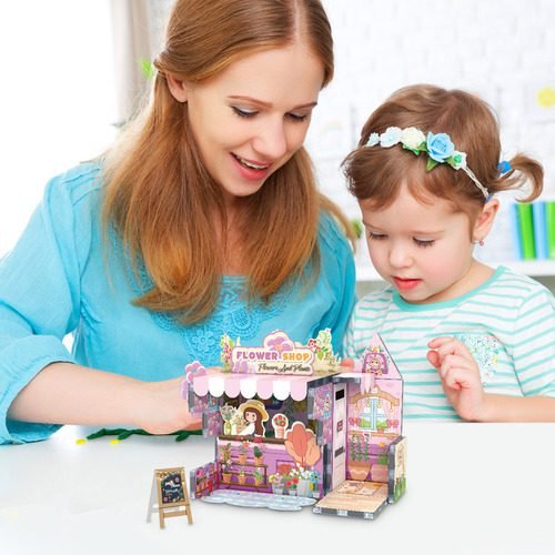 - „Gėlių krautuvėlės plėtra”: Pradėkite nuo paprastos krautuvėlės konstrukcijos ir palaipsniui pridėkite naujų elementų iš konstruktoriaus ar kitų žaislų (pvz., mažą turgelį šalia, pristatymo automobilį). Vaikai gali planuoti ir įgyvendinti savo krautuvėlės plėtros projektą.