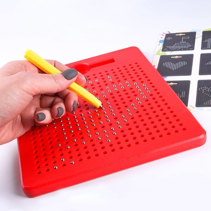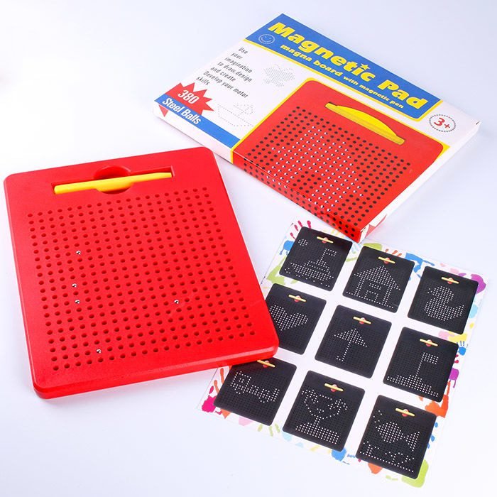Magnetinė piešimo lenta Mag Pad. Įdomus būdas pakviesti vaikus daugiau piešti ir daugiau domėtis kūryba. Lenta patogiai naudojama lavinimo pamokom: skaičių ir raidžių pažinimui, skaitymui, skaičiavimui, piešimui ir rankos koordinacijos stiprinimui ir kitoms ugdančioms veikloms. Šis žaidimas: – lavina smulkiąją motoriką; – didina koncentracinius įgūdžius ir susitelkimą; – vysto kūrybingumą ir vaizduotę. Lentą galima pasiimti bet kur, ji puikiai tiks keliaujant automobiliu. Vaikas turės ką veikti, o tai tikrai bus daug naudingiau nei žiūrėti animacinius filmus planšetiniame kompiuteryje ar telefone. Net 380 kamuoliukų, su kuriais galima sukurti įvairiausius piešinius.