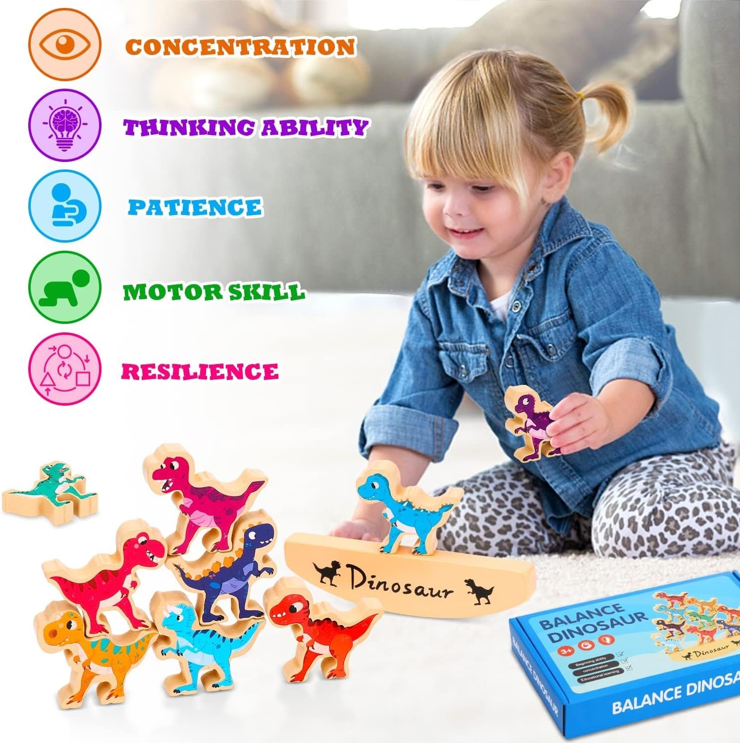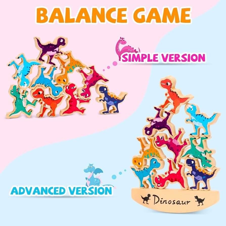 Žaidimas suteikia vaikams galimybę kūrybiškai praleisti laiką, statant dinozaurus vieną ant kito ir bandant išlaikyti pusiausvyrą. Jį galima žaisti tiek individualiai, tiek su draugais ar šeima. Dinozaurai gali būti balansuojami ant specialaus sūpuoklių pagrindo – tai sukuria dar daugiau linksmybių ir iššūkių!