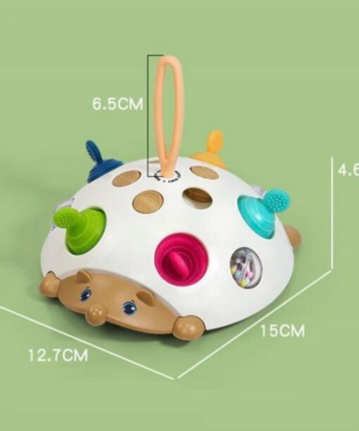 WOOPIE BABY sensorinis žaislas 4 in 1 „Ežiukas Pop-it“ aktyvuojantis – tai interaktyvus ežiukas, kuris sujungia pop-it su spaudžiamais, gniaužiamaIs ir sukiojamais elementais, siūlydamas net 4 sensorines funkcijas viename žaisle. Minkšti burbuliukai ir įvairios tekstūros stimuliuoja lytėjimo pojūtį, padeda nusiraminti ir sumažinti įtampą, o manipuliaciniai žaidimai lavina smulkiąją motoriką, akies–rankos koordinaciją ir dėmesio sutelkimą. Draugiška ežiuko forma skatina jį lengvai sugriebti, saugios medžiagos ir užapvalinti kraštai užtikrina komfortišką naudojimą, o kompaktiškas dydis leidžia žaislą patogiai naudoti namuose, kelionėje ar darželyje. Tai praktiškas kasdienis sensorinis 4 in 1 žaislas mokymuisi per žaidimą.