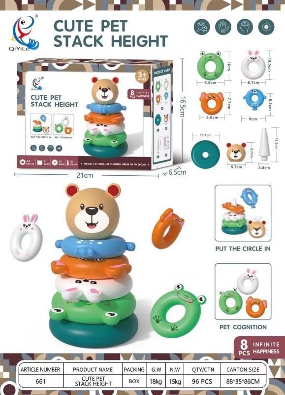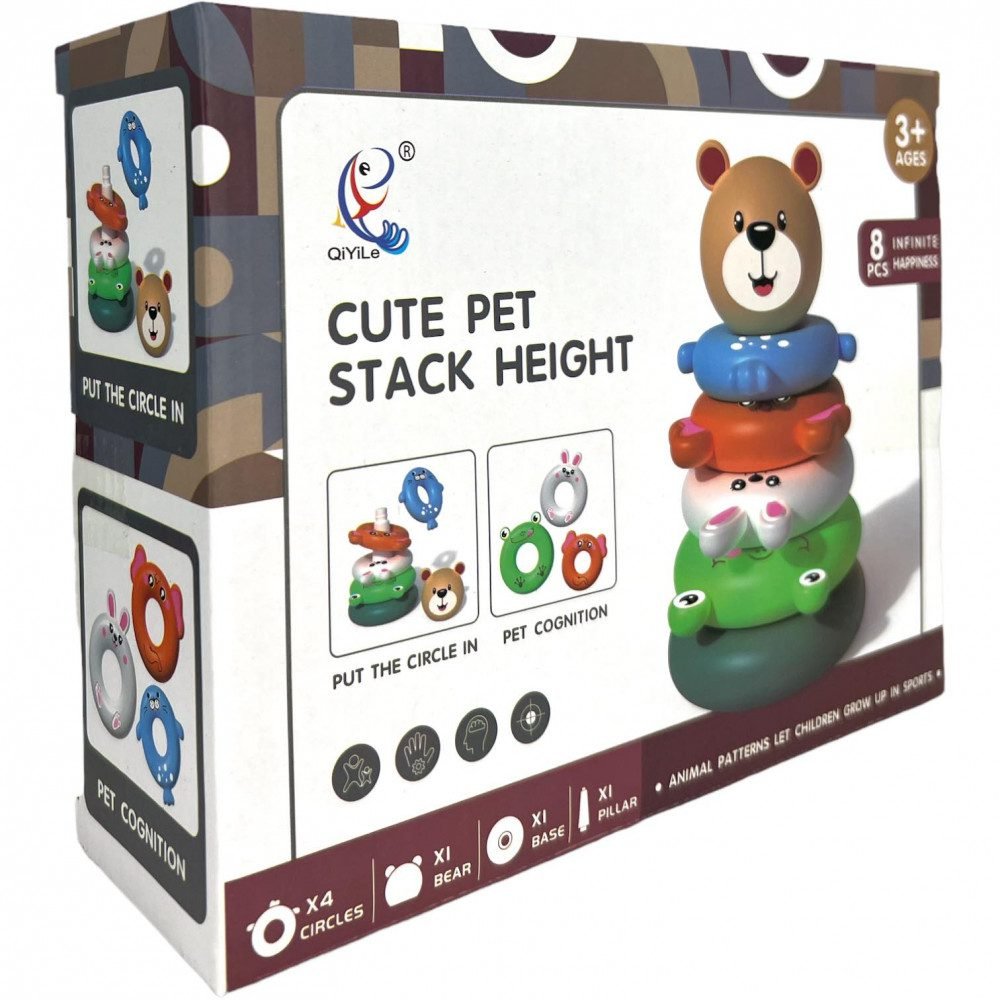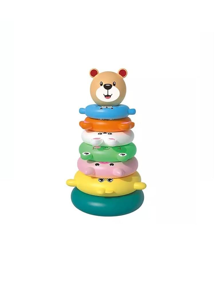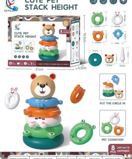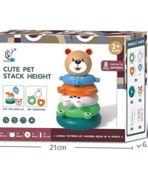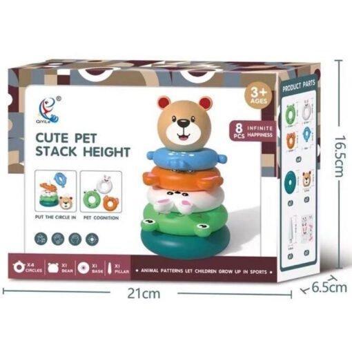 - Mokantis spalvų, formų, dizainų ir dar daugiau, šis žiedų žaislas turi penkis žiedus, kuriuos galima sudėti vieną ant kito.