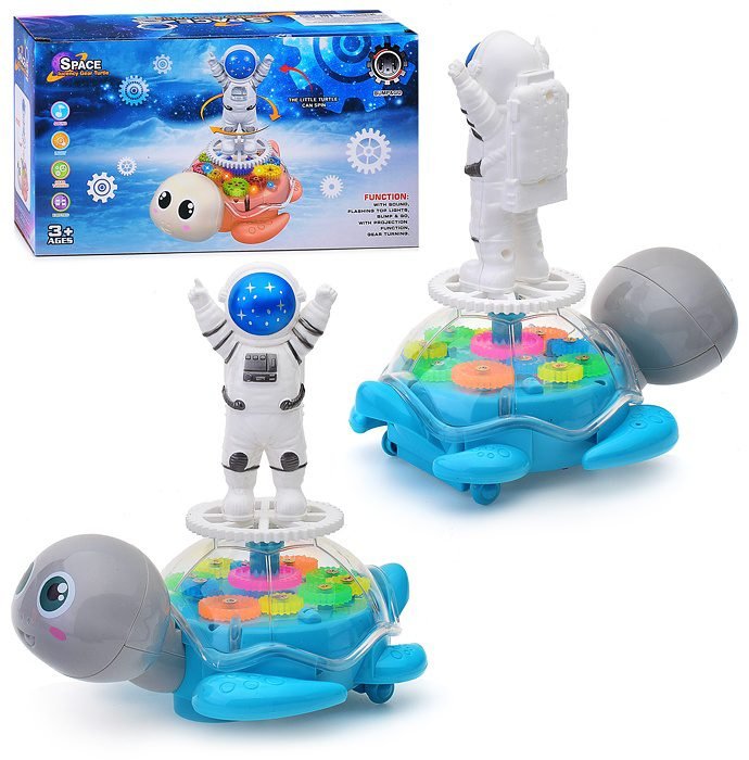 Šis smagus žaislas leidžia kosmonautui keliauti ant lėto ir draugiško vėžlio! Žaislas šviečia ir groja garsais, todėl jis labai patrauklus ir smagus. Juo galima žaisti, kurti nuotykius ir fantazuoti apie kosmosą!