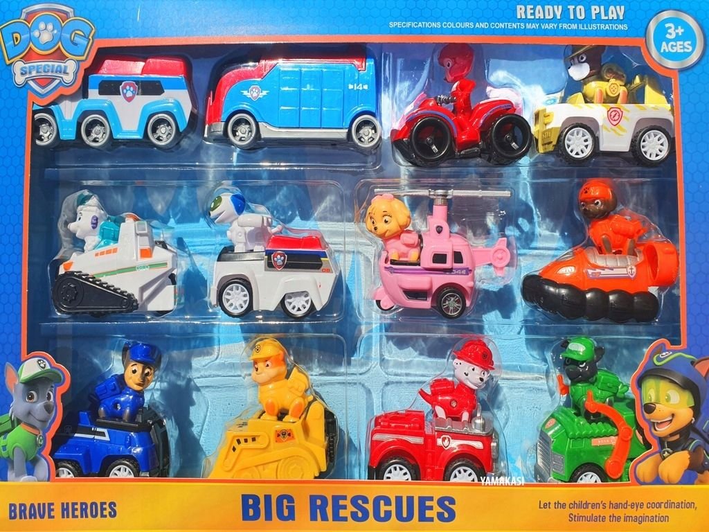 Tai mašinytės su šunyčiais, kurie išsiima iš mašinėlių, tad vaikams labai patinka vykdyti misijas ,,persikeliant” iš vietos. Rinkinyje yra visų mylimas Raideris (Ryder), kuris iškviečia vaikus į misijas ir vadovauja šiems mieliems šuniukams! Ir net Pėdsekys (kuris retai randamas) ir net du autobusai!