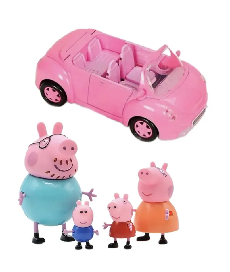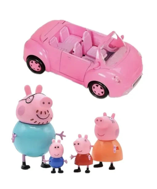 Sveikas atvykęs į kiaulytės Pepos pasaulį! Kartu su Pepa leiskis į smagią kelionę raudonu automobiliu. Šiuo automobiliu keliauja kiaulytė Pepa su savo mama, tėčiu ir broliu Džordžu. Automobilis turi besisukančius ratus, ir atsidarančią bagažinę, o paspaudus mygtuką, pasigirsta smagi muzika. Automobilį galima išskleisti ir išsitraukia iškylos staliukas. Tad vaikams tikrai bus daug smagios veiklos su šiuo žaislu!